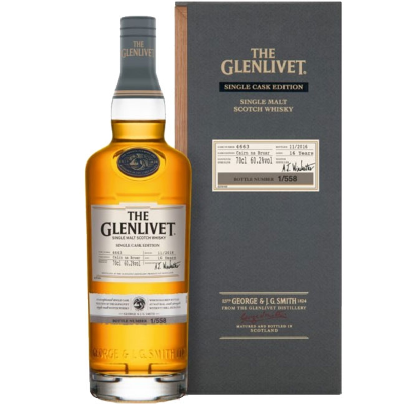 CHF 380.00Glenlivet Single Cask Edition Cairn na Bruar 16 Years Single Malt Malt Whisky 2016 60.2° 70cl