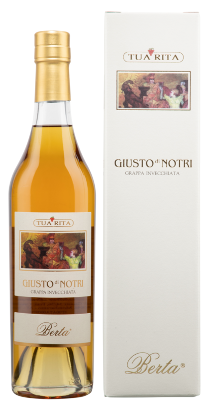 Issue des marcs de Giusto di Notri, un assemblage de merlot, cabernet sauvignon et cabernet franc du domaine viticole Tua Rita en Toscane. Berta a distillé cette grappa élégante de manière traditionnelle, selon un procédé discontinu. L'affinage en fûts de bois dure douze à quinze mois.